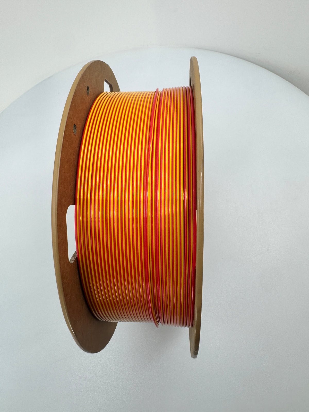 Ambrosia Filament's line of SILK PLA is part of our Low Calorie line of filament, no additives just butter smooth printing. This filament is extra shiny, and shows off colors very vividly. This filament is especially good at showing color contrasts in co-extrusion and other multi-color.